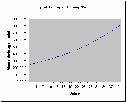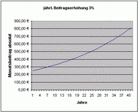 Eine Beitragserhöhung um 3% jährlich bedeutet, dass nach